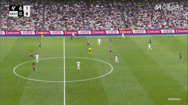 19分35佩德里壓迫踢在皇馬球員身上出界,抱怨邊線球球權(quán)判給皇馬