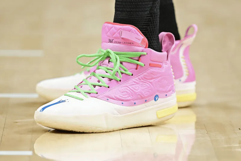 比賽中,約基奇上腳小豬佩奇配色361° Joker1 GT。