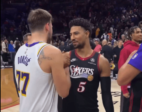 賽后,盧卡-東契奇賽后和前隊(duì)友昆廷-格蘭姆斯進(jìn)行了一番交流,兩人曾在獨(dú)行俠當(dāng)過隊(duì)友。