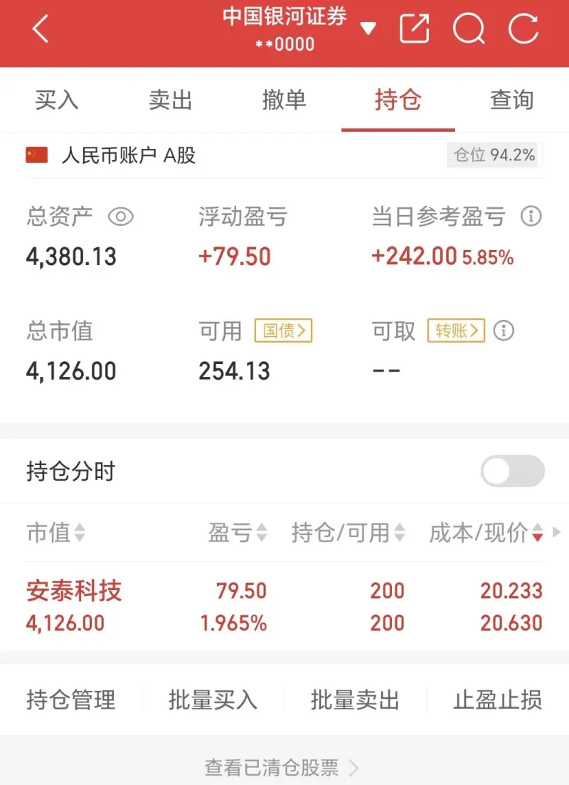 21年9月份開始記錄實盤,到今天剛好1000天,應(yīng)該是全網(wǎng)記錄時間最長的吧,從15年6月份入市,經(jīng)歷千股跌停,股市熔斷,什么大風(fēng)大浪也都見過,因為一直堅持小倉位,哪怕跌停,心態(tài)也都很平穩(wěn)。在沒有找到一種穩(wěn)定復(fù)利的模式前我是不可能上倉位的。資金量只要滿足我能正常交易就行了,唯獨在去年下半年有波小牛時一下多加了點倉位,其他時間市場平平基本就沒加過倉。一個月翻倍者眾,每個月穩(wěn)定復(fù)利5%者寡,偶爾運氣好抓個連板對我來說不是真正的開心,如果哪天能做到每個月都紅哪怕少一點一兩個點,極少的回撤,這才是真正的悟道。由于平時兼顧工作,一直盯盤也不可能,所以賣在當(dāng)天的高位,對我來說不現(xiàn)實,一般就是開盤半小時看看,下午收盤看看,有一些不同的思路也在嘗試。有一些策略可能某個時期試用,某一時期又不適用了,股市里面大家都是對手盤,你進化對方也進化,這也導(dǎo)致賺錢越來越難。如果經(jīng)歷一次5000點以上的牛市,我還沒有賺錢那可能就是不適合這條路了,那時候就會退網(wǎng),在這之前我是不會倒下去的。??