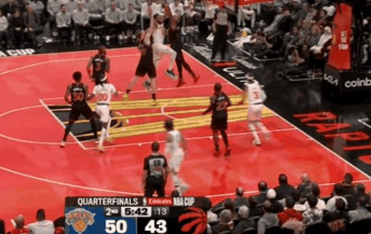 NBA杯淘汰賽,尼克斯對(duì)陣猛龍的隔扣比賽正在進(jìn)行中。