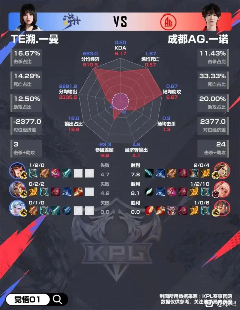 AG對陣TE溯雷達圖出爐,大家覺得男女選手的溯雷
