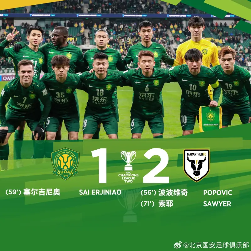 今晚國(guó)安在年度&賽季收官戰(zhàn)中主場(chǎng)1-2不敵麥克阿瑟,亞冠2E組6輪拿到5分墊底出局。比賽中意外連連,貢獻(xiàn)名場(chǎng)面。