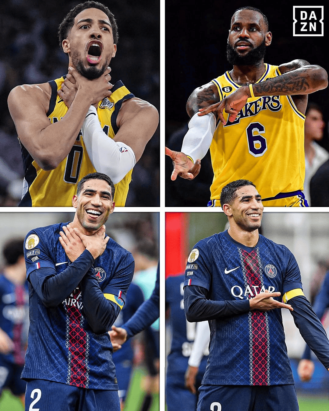 虎撲10月26日訊 步行者隊球員泰瑞斯-哈利伯頓更新個人Ins,分享巴黎圣日耳曼足球俱樂部右后衛(wèi)阿什拉夫-哈基米進球后做出的血脈“鎖喉”及“冰融血脈”(Ice In My Veins)慶祝動作。