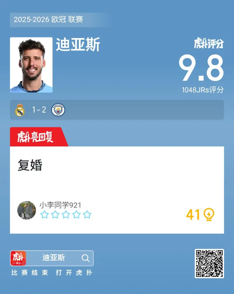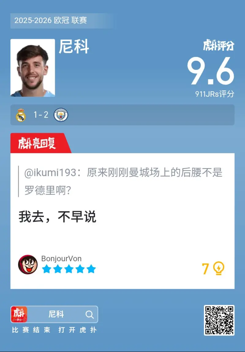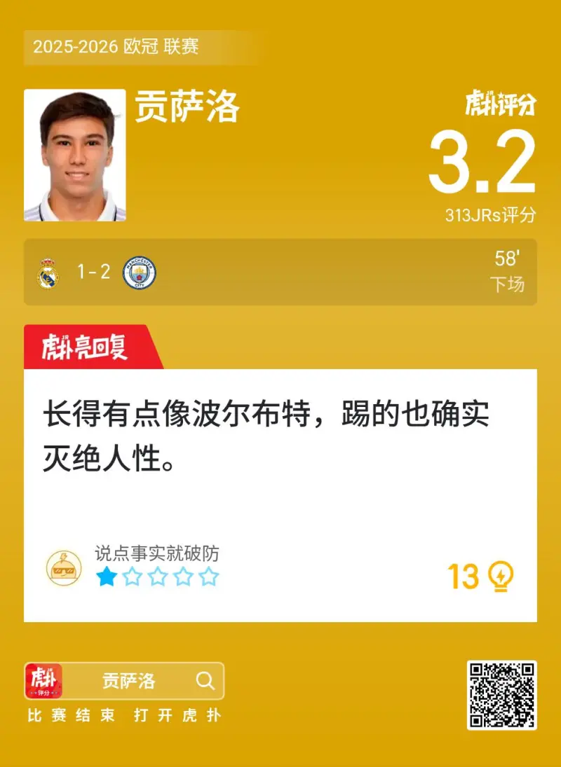 本場比賽羅德里戈先入一球,皇城姆巴佩全場替補,大戰(zhàn)都沒哈蘭德造點并主罰成功,神評讓我們來看看JRs貢獻(xiàn)了哪些神評!姆巴