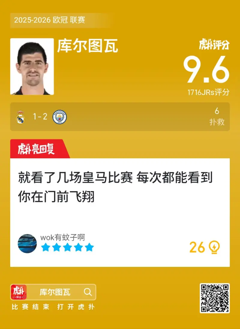 在剛剛結(jié)束的歐冠比賽中,皇馬主場1-2遭曼城逆轉(zhuǎn)。神評