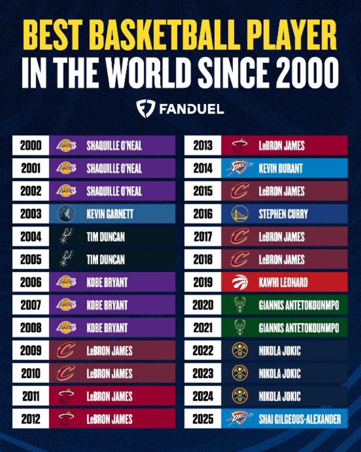 其列出自2000年以來(lái)每年最佳球員的自年最強(qiáng)詹姆榜單,并發(fā)問(wèn):“同意嗎?”