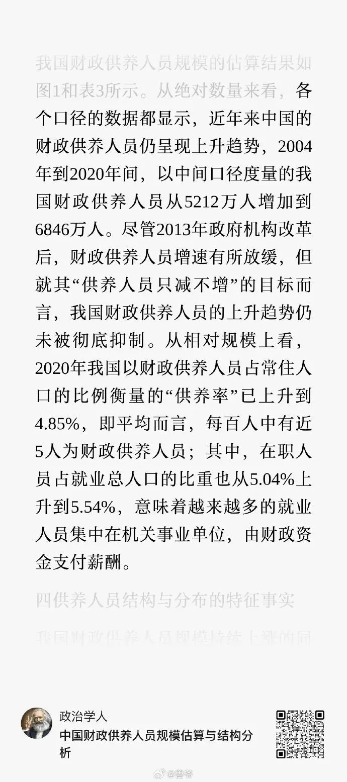 越來(lái)越多的就業(yè)人員集中在機(jī)關(guān)事業(yè)單位,由財(cái)政資金支付薪酬