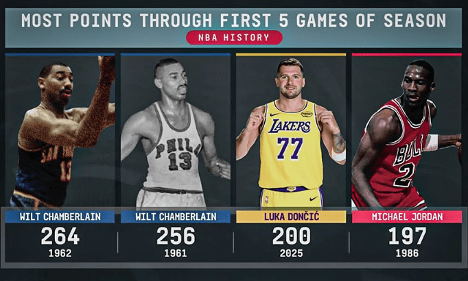 [流言板]東契奇本賽季前五場(chǎng)砍下200分,超越喬丹升至歷史第三