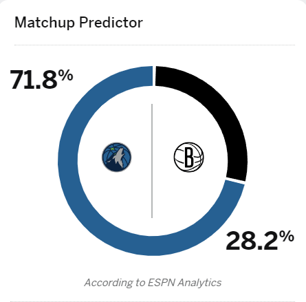 [流言板]ESPN預(yù)測(cè)明日森林狼vs籃網(wǎng)比賽:森林狼勝率71.8%占據(jù)上風(fēng)