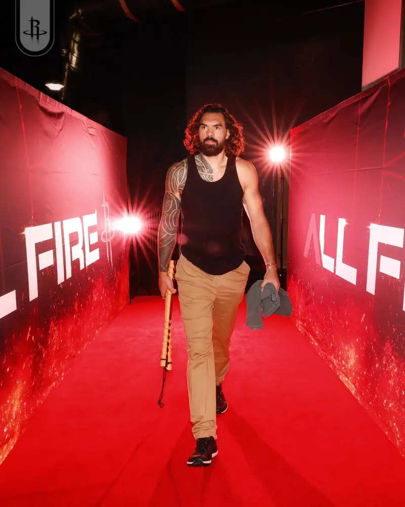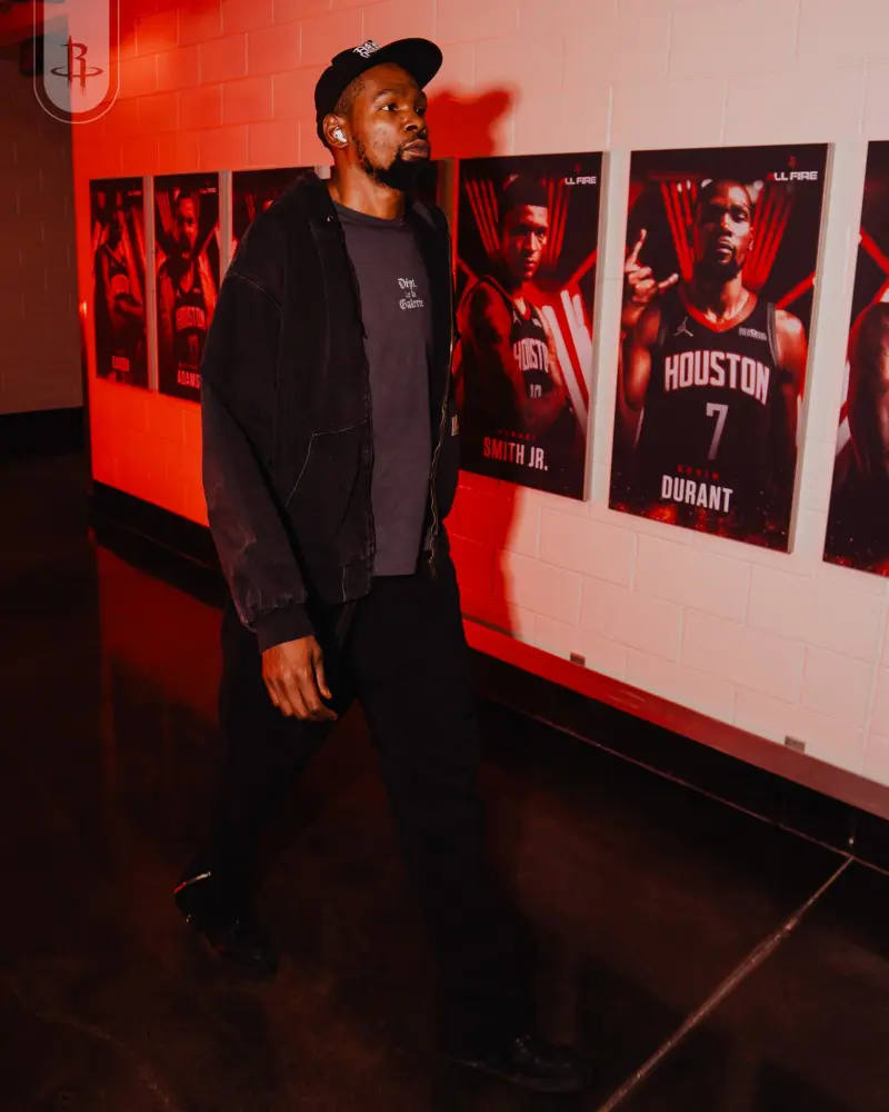 賽前,入主火箭社媒曬出球員們步入球館的場(chǎng)球瞬間,凱文-杜蘭特等球員出鏡。瞬間