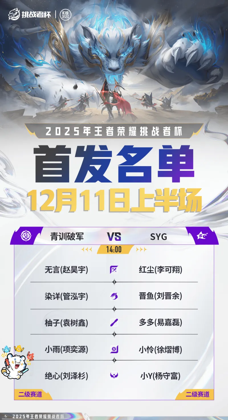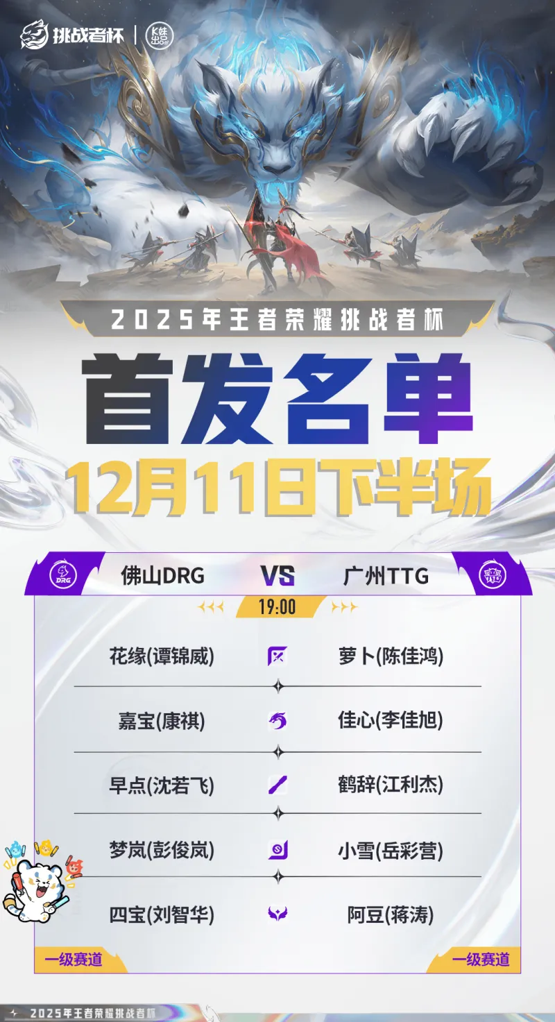 2025王者榮耀挑戰(zhàn)者杯單敗淘汰賽D6【首發(fā)名單】送達(dá) !雪對訓(xùn)破