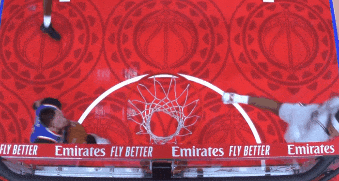 第四節(jié)比賽,下接萊恩快下接球強(qiáng)起雙手暴扣,球強(qiáng)起雙全中造犯規(guī)兩罰全中已得5分。手暴