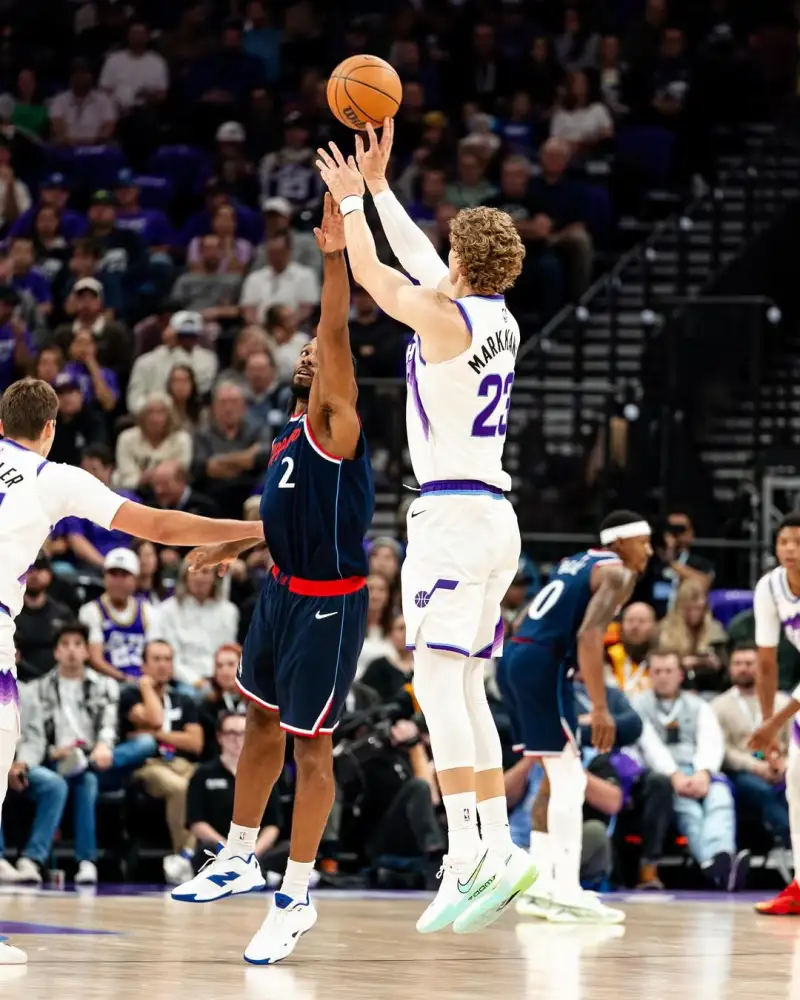 在昨日爵士以129-108戰(zhàn)勝快船的開門比賽中,勞里-馬爾卡寧出戰(zhàn)33分鐘,板擊13中8,沉快船馬場照三分7中4得到20分6板5助攻。曬揭