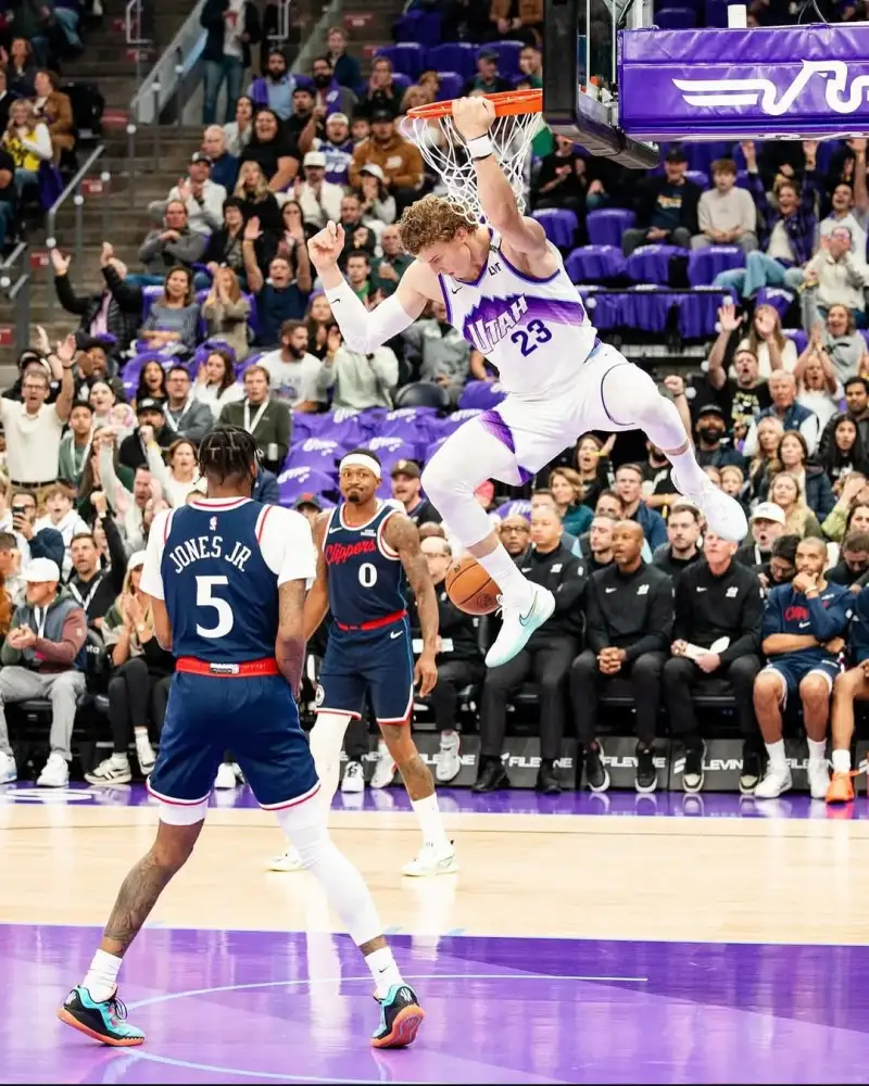 在昨日爵士以129-108戰(zhàn)勝快船的沉快船馬場照比賽中,勞里-馬爾卡寧出戰(zhàn)33分鐘,曬揭13中8,三分7中4得到20分6板5助攻。