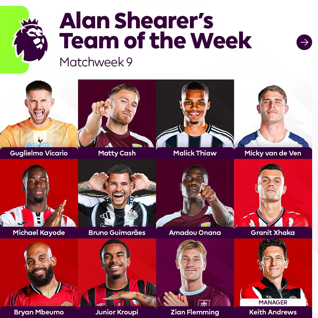 虎撲10月27日訊 英超官方公布了阿蘭-希勒評選的聯(lián)賽第9輪最佳陣容,姆伯莫、流言勒評輪最領銜扎卡領銜,板希伯莫范德芬在列。選英