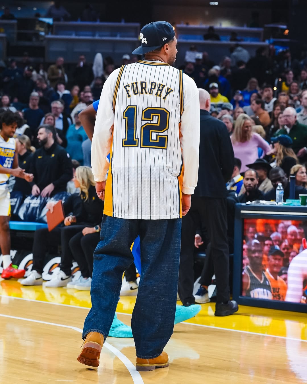 比賽期間,著隊(duì)泰瑞斯-哈利伯頓穿著印有隊(duì)友約翰尼﹣弗菲名字及號(hào)碼的球衣慶生復(fù)古版步行者球衣觀賽,以慶祝弗菲的觀賽21歲生日。