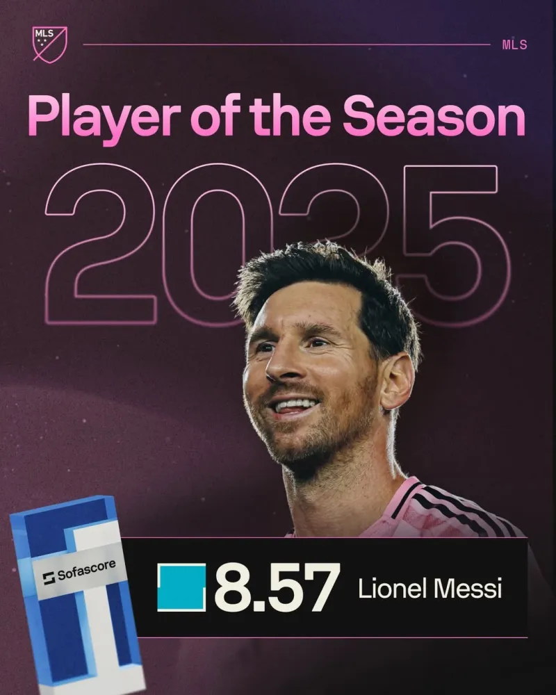第四個大MVP!梅西獲得SofaScore評的MLS最佳球員獎!
