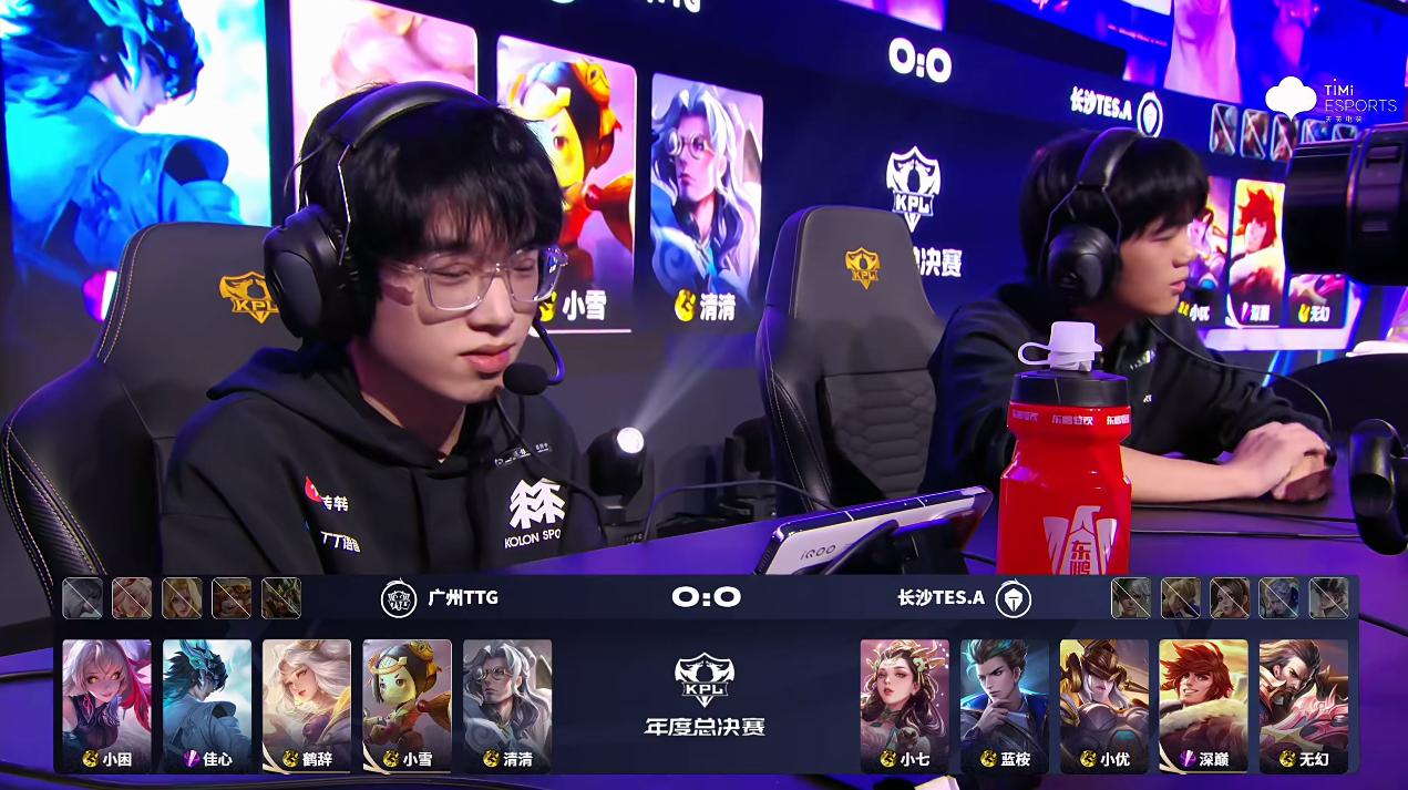 虎撲10月03日訊 2025KPL年度總決賽,TTG/TES第1局BP:廣州TTG一選魯班大師,師清首秀清清迎來游走首秀。清迎具體陣容如下: