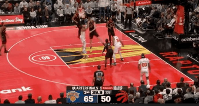 NBA杯淘汰賽,尼克斯對陣猛龍的森無視防守拋比賽正在進行中。