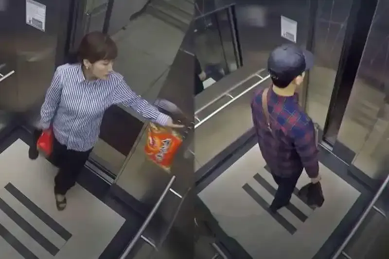 (崔成熙和全敏根分別在27、28號上電梯的懸案系列消失視頻錄像截圖)