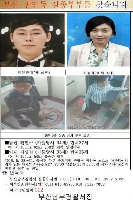 (韓國警方公布的消失的夫妻身份身份信息和照片)
