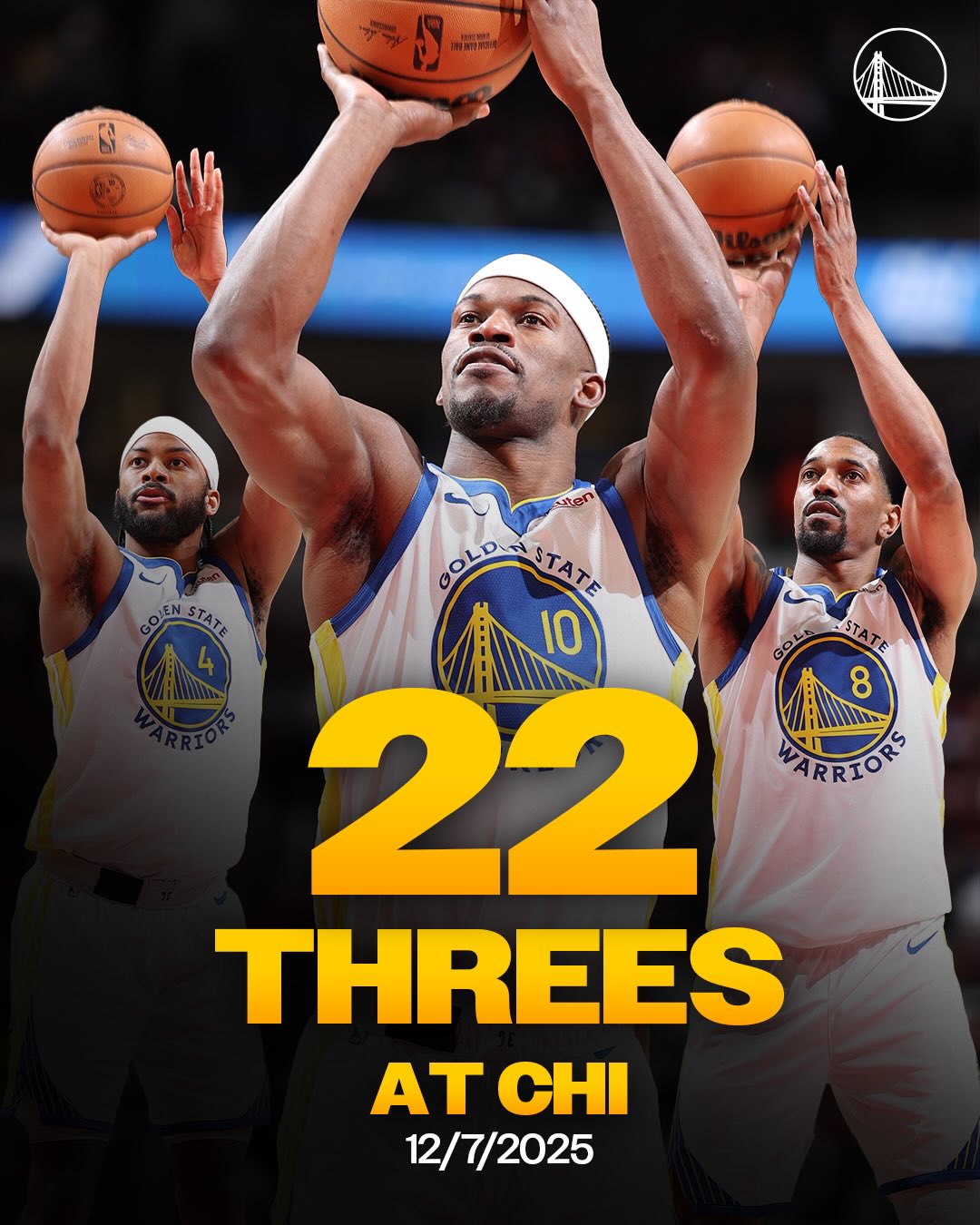 [流言板]三分大隊(duì)!勇士官方:我們?cè)谥ゼ痈鐔螆?chǎng)投中了22記三分