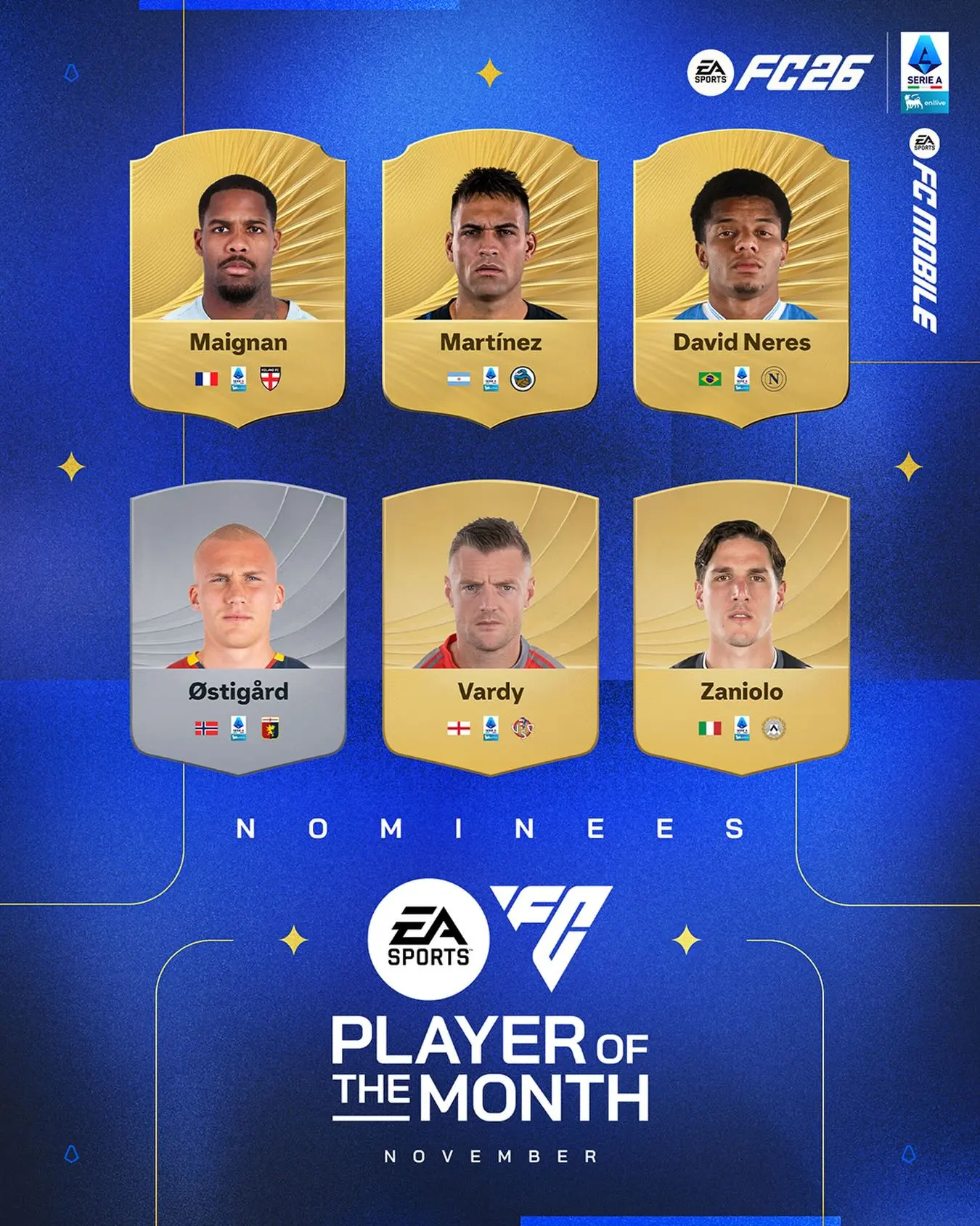 虎撲12月04日訊 意甲官方公布聯(lián)賽11月份最佳球員候選名單: