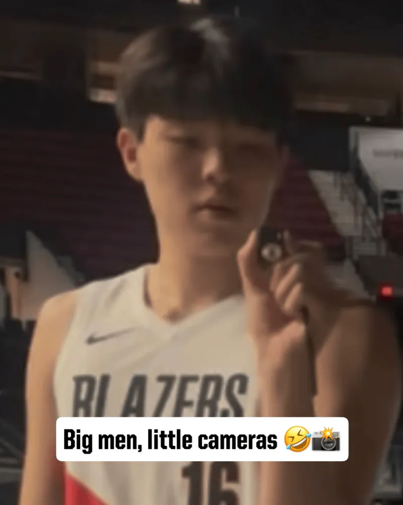 “在媒體日期間,官方我們給多諾萬-克林根和楊瀚森提供了迷你相機(jī)讓他們隨手拍攝!曬照攝”開拓者官方附文道。自楊自拍照片