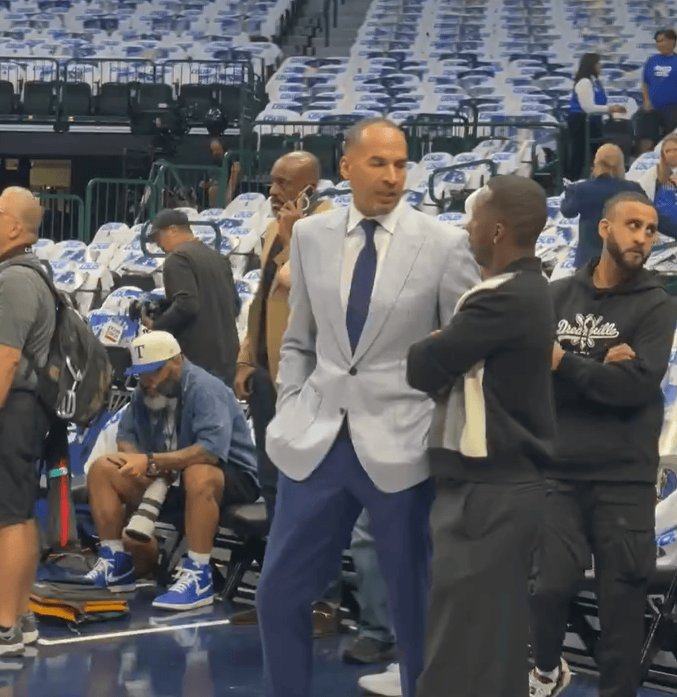 賽前,尼科據(jù)現(xiàn)場記者Sam Gannon發(fā)出的板聊視頻顯示,獨行俠總經(jīng)理尼科-哈里森和知名經(jīng)紀(jì)人里奇-保羅在場邊溝通。什呢賽前