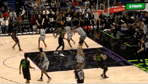 NBA常規(guī)賽,鵜鶘主場迎戰(zhàn)馬刺的角隊(duì)比賽正在進(jìn)行中。