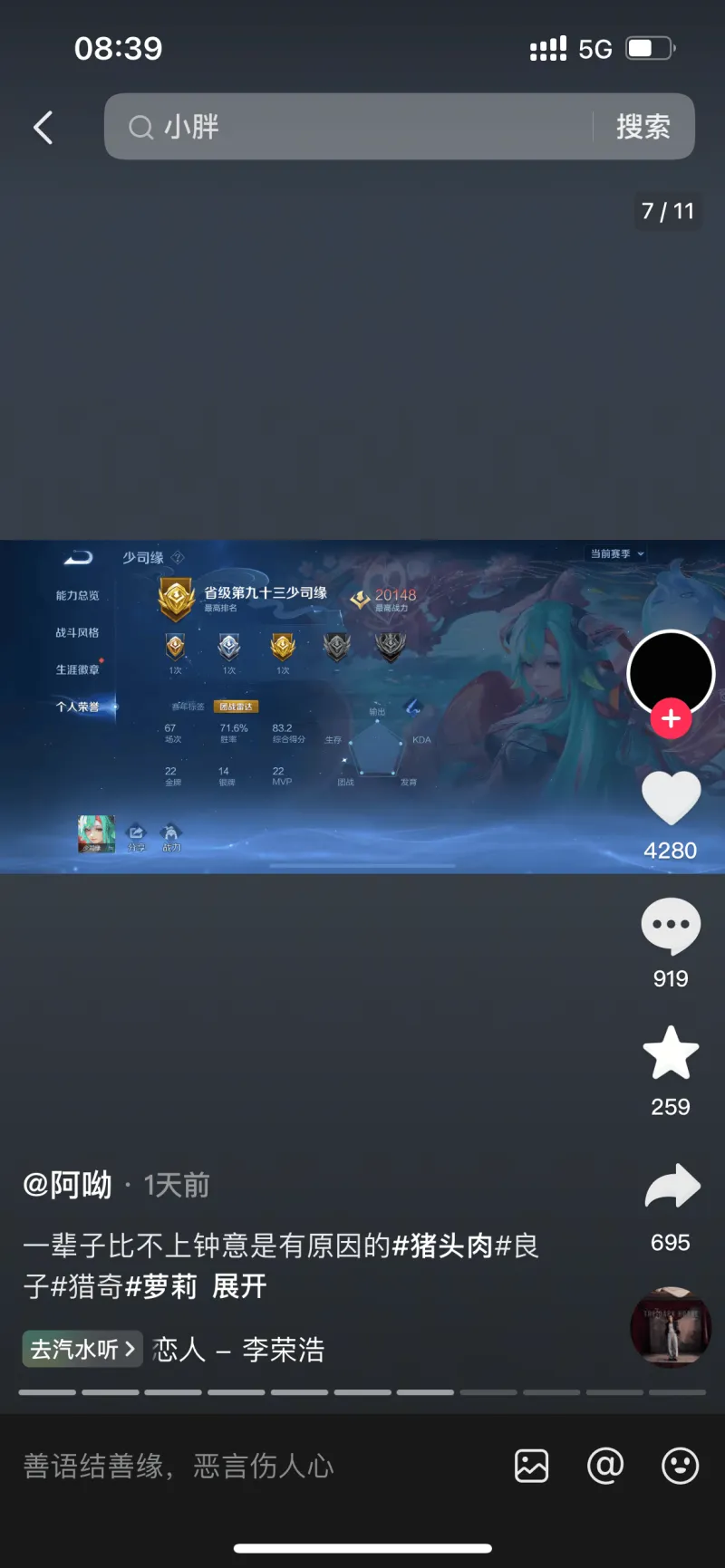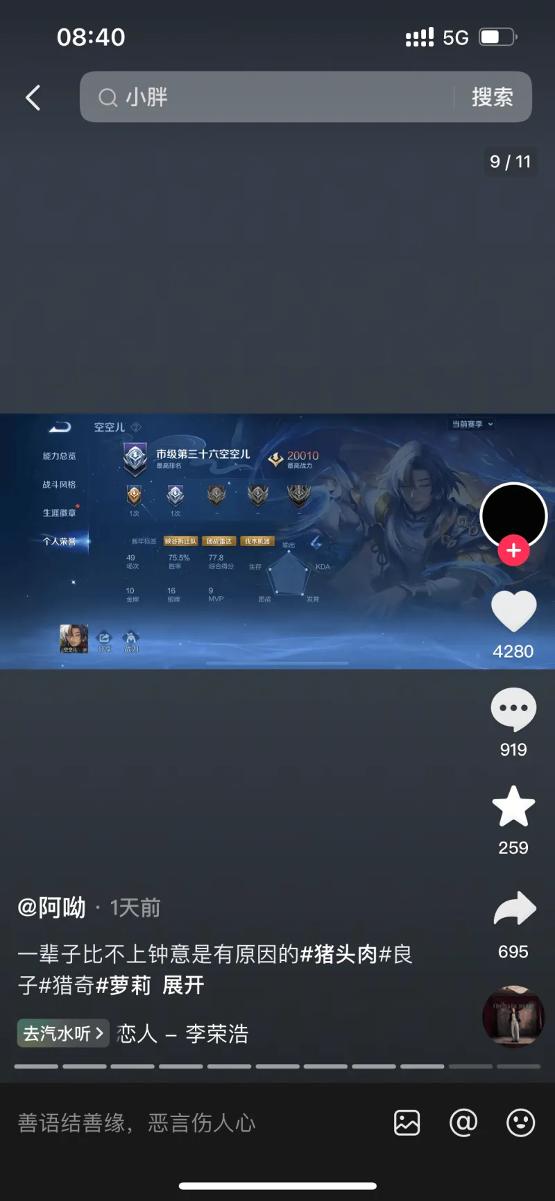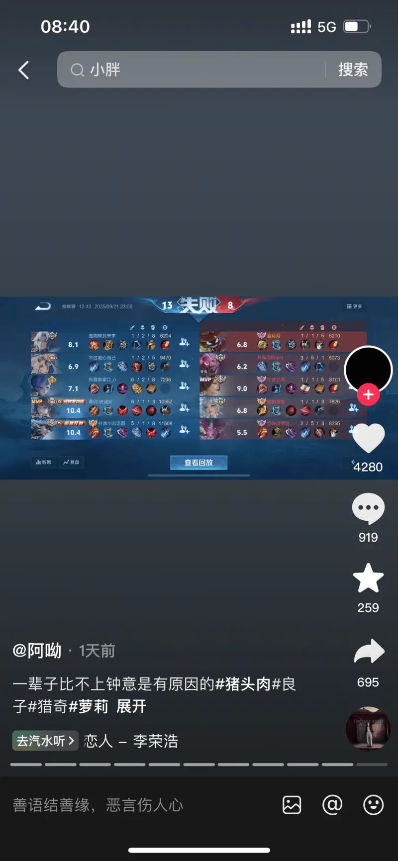 持續(xù)反擊,小胖巔峰隊(duì)友發(fā)文:一輩子比不上鐘意是反擊發(fā)文