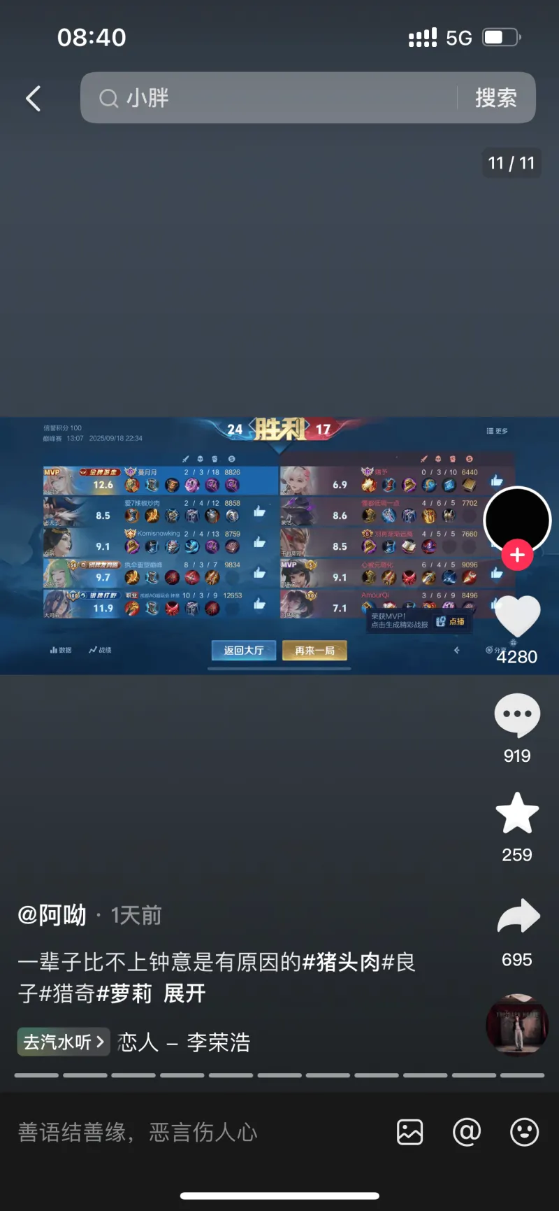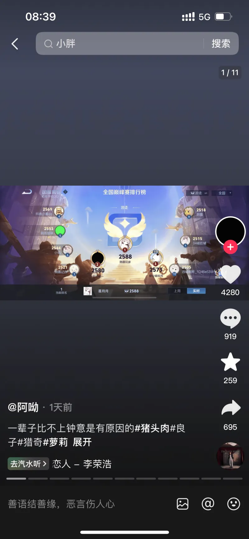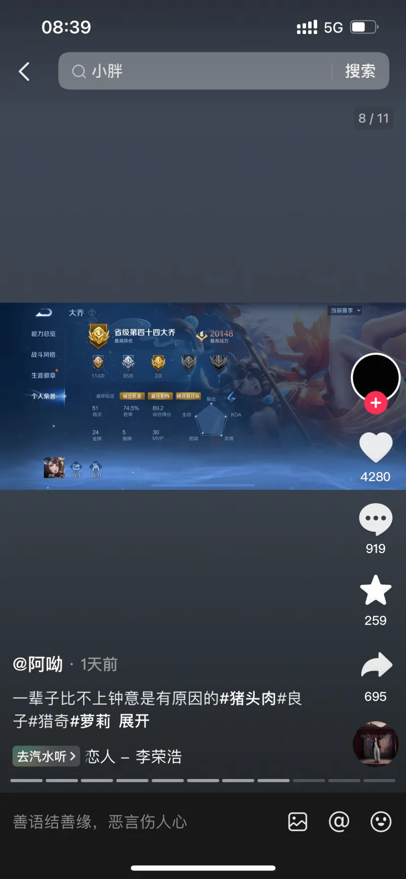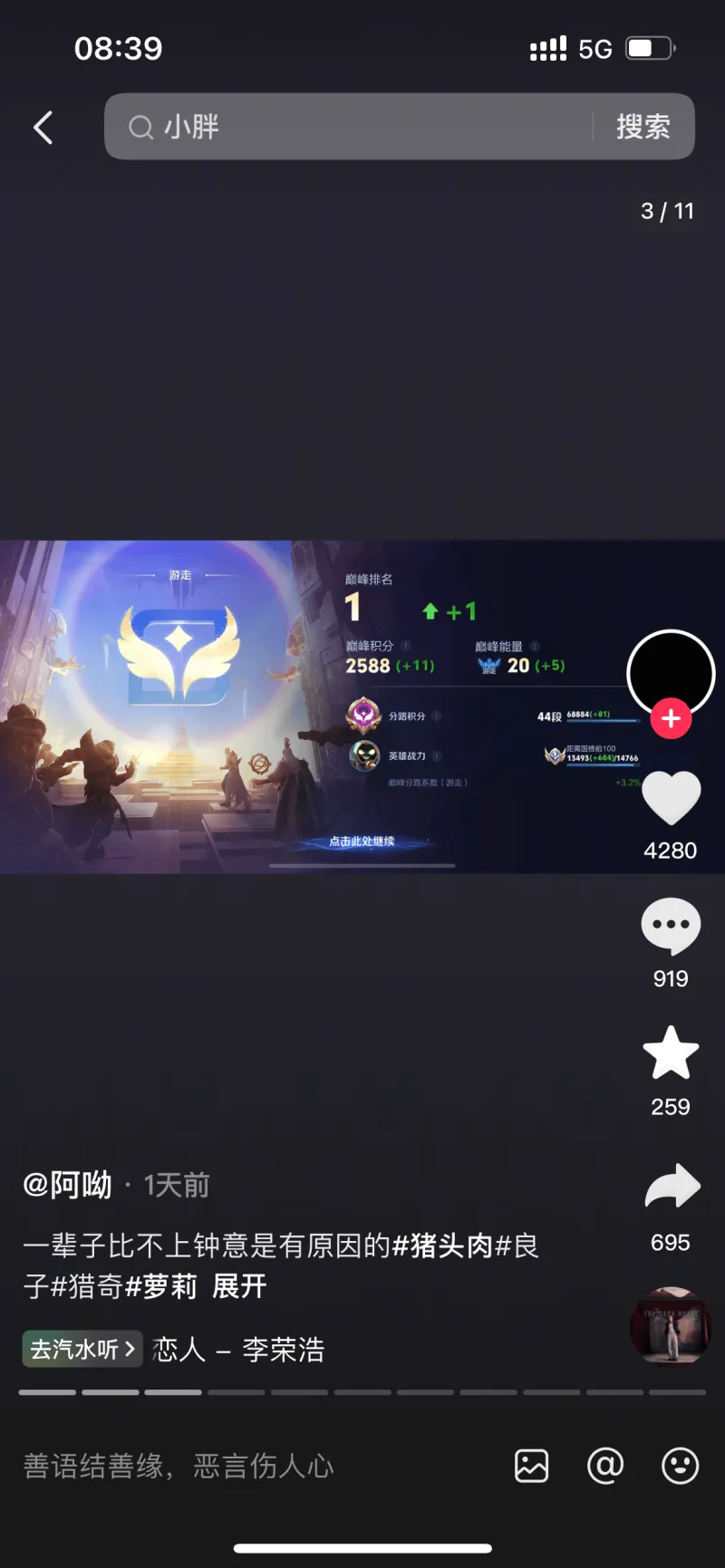 持續(xù)反擊,小胖巔峰隊(duì)友發(fā)文:一輩子比不上鐘意是反擊發(fā)文