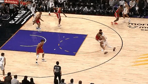 NBA常規(guī)賽,太陽(yáng)主場(chǎng)迎戰(zhàn)快船的防守比賽正在進(jìn)行中。