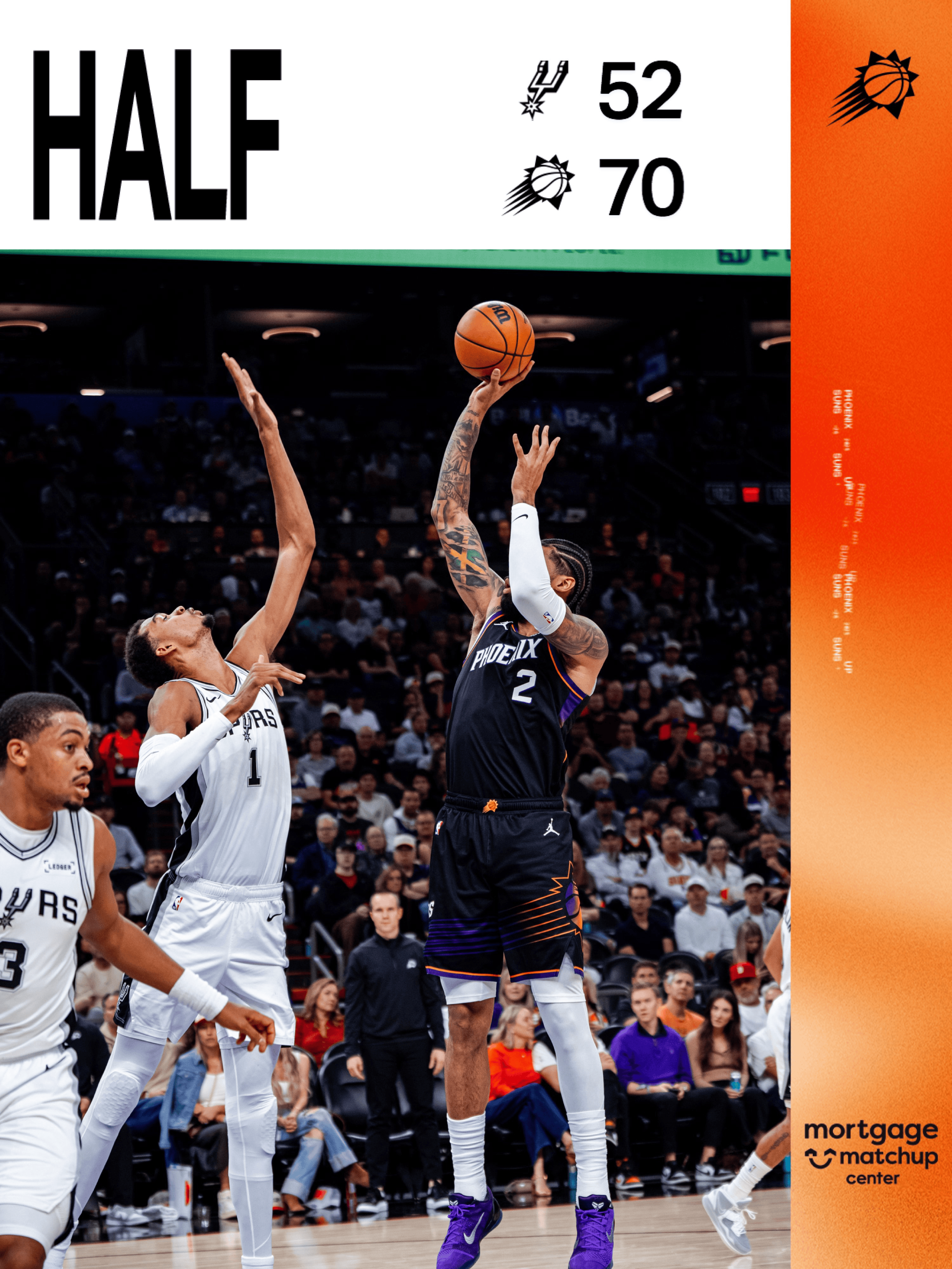 第二節(jié)比賽結(jié)束,太陽70-52領(lǐng)先馬刺。