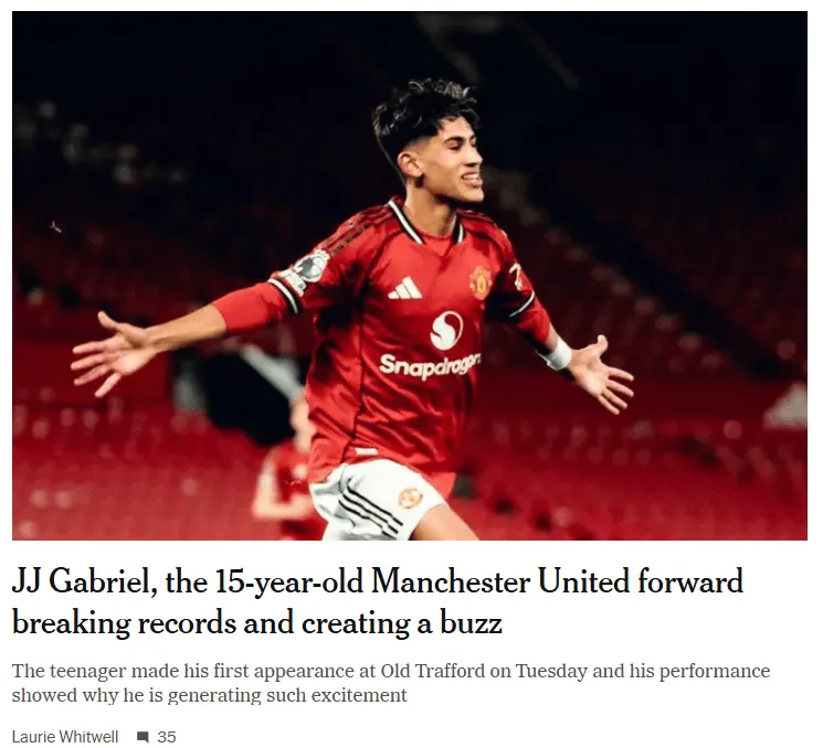 15歲曼聯(lián)前鋒 JJ?加布里埃爾:屢破紀(jì)錄,聲名鵲起