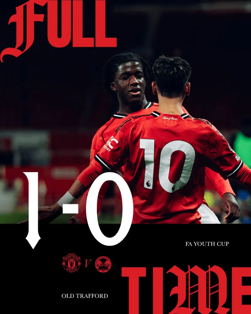 凌晨進(jìn)行的U18青年足總杯的比賽,曼聯(lián)1-0彼得堡聯(lián)