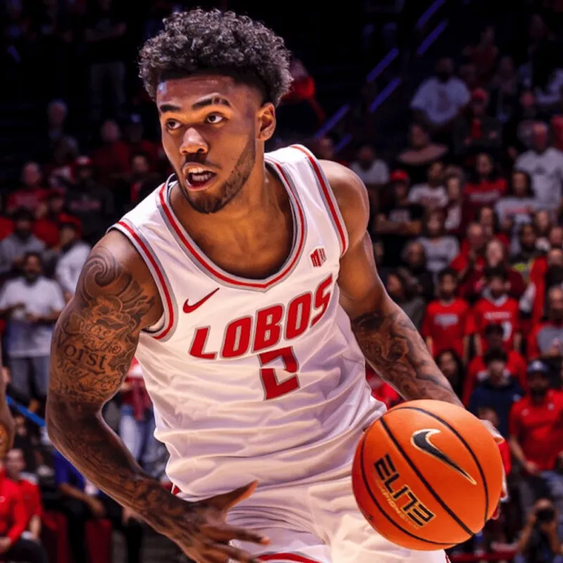 多諾萬-鄧特是一名技術(shù)嫻熟但投射不穩(wěn)的后衛(wèi),能夠得分、組織并在籃下高效終結(jié)。上賽季,鄧特在新墨西哥場均可得到20.4分2.4籃板6.4助攻1.4搶斷0.9封蓋。他的高籃球智商和運(yùn)動能力是不少球隊(duì)喜歡的,在使用率為28.6%的情況下,進(jìn)攻效率高達(dá)114.7。他擅長持球突破,利用自己的速度、爆發(fā)力和多變的持球創(chuàng)造力去擺脫對手,隨后在籃下完成終結(jié)。然而其尺寸平庸,對抗平平,在面對真正具有防守威懾力的內(nèi)線時會打得掙扎。他的持球投三分能力有限,上賽季他場均出手不足2次,遠(yuǎn)算不上合格的射手,這導(dǎo)致他在進(jìn)攻端的威脅單一,即沖擊籃筐。不過鄧特在轉(zhuǎn)換進(jìn)攻中的表現(xiàn)更是亮眼:根據(jù)Synergy數(shù)據(jù),他場均會有5.3個轉(zhuǎn)換進(jìn)攻的回合,并列全國第二。當(dāng)他沖起來時,平均每回合可得1.274分,在所有場均轉(zhuǎn)換進(jìn)攻回合超過4次的球員中,效率高居全國第二。他在利用突破和擋拆尋找隊(duì)友的能力也非常出色,可以在沖擊對手的同時找尋自己的隊(duì)友。防守端的鄧特具備垃圾狗的屬性,但整體表現(xiàn)扎實(shí),只是身材對其上限有所限制。