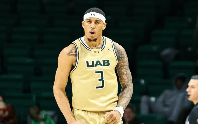 身材矮小的阿登-霍洛維是非常內(nèi)特-奧茨的精靈后衛(wèi):沒有防守,決策快,在跑手槍的時候善于掩護(hù),接應(yīng)和快速投籃。他上賽季作為替補(bǔ),場均可得到11.4分1.9籃板1.9助攻1.2失誤,有效命中率高達(dá)60.4%。他上賽季是阿拉巴馬最出色的射手之一,場均以41%的命中率出手5.7次三分,靠著優(yōu)秀的持球和敏捷性在場上游弋,利用快節(jié)奏彌補(bǔ)自身的運(yùn)動能力和身材的不足。他的出手大膽且自信,往往在一個掩護(hù)后就能夠接球高效出手。而他的突破也依賴于節(jié)奏和變向,可以仰賴控球來創(chuàng)造機(jī)會。他的尺寸和視野限制了上限,然而在大學(xué),他的靈巧和精準(zhǔn)自信的三分,無比貼合紅潮那激進(jìn)的提速跑轟風(fēng)格。