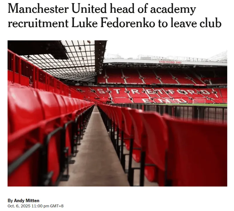 曼聯(lián)青訓(xùn)學(xué)院招聘主管盧克?費(fèi)多倫科已接受一家大型足球經(jīng)紀(jì)公司的邀約,即將離開(kāi)曼聯(lián)。