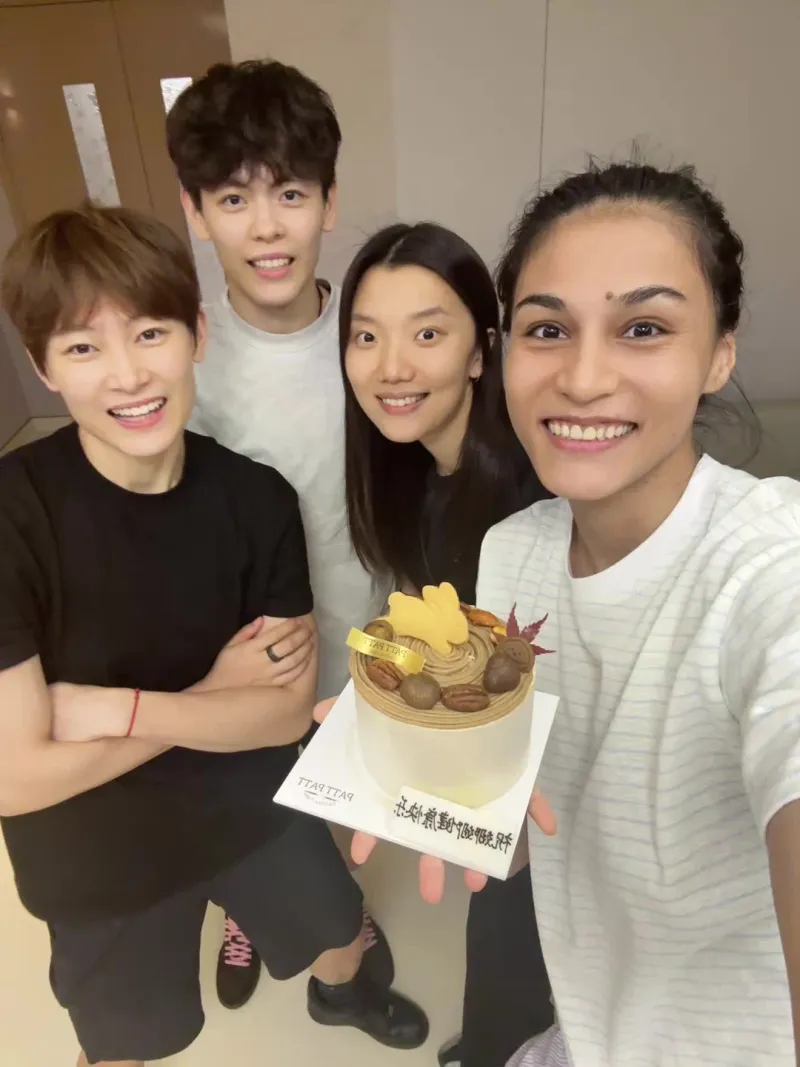 虎撲10月07日訊 迪拉娜社媒分享與楊力維&楊舒予&張茹合照。