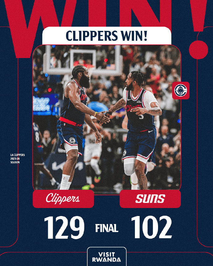 虎撲10月25日訊 NBA常規(guī)賽,快船129-102戰(zhàn)勝太陽。勝太