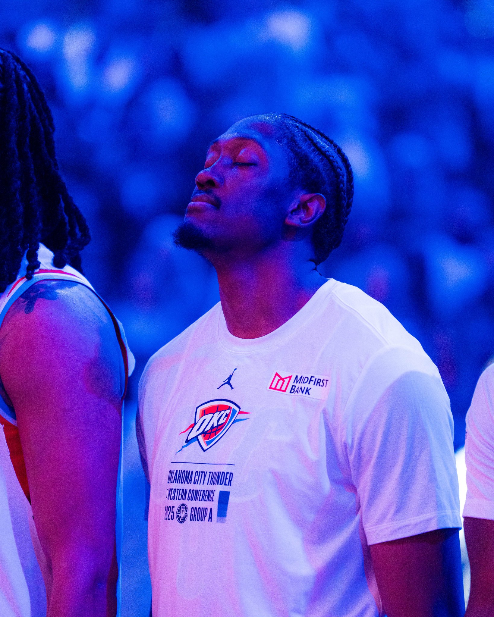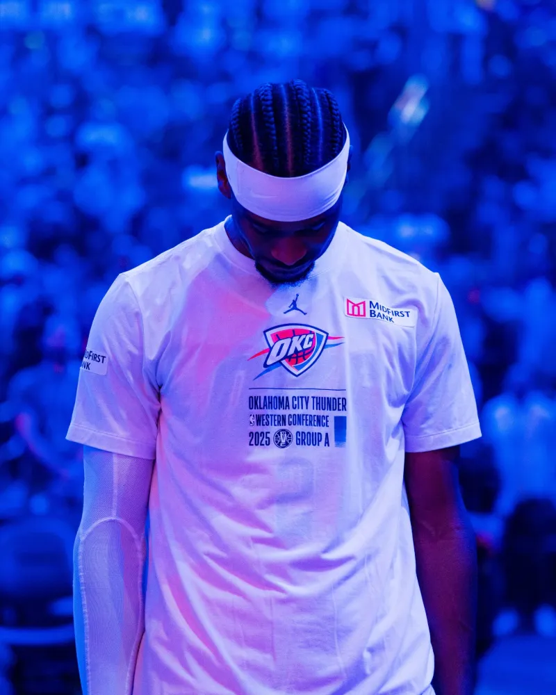 雷霆社媒曬出杰倫-威廉姆斯、霆社謝伊-吉爾杰斯-亞歷山大在入場儀式的媒曬個人特寫照片,并配文: