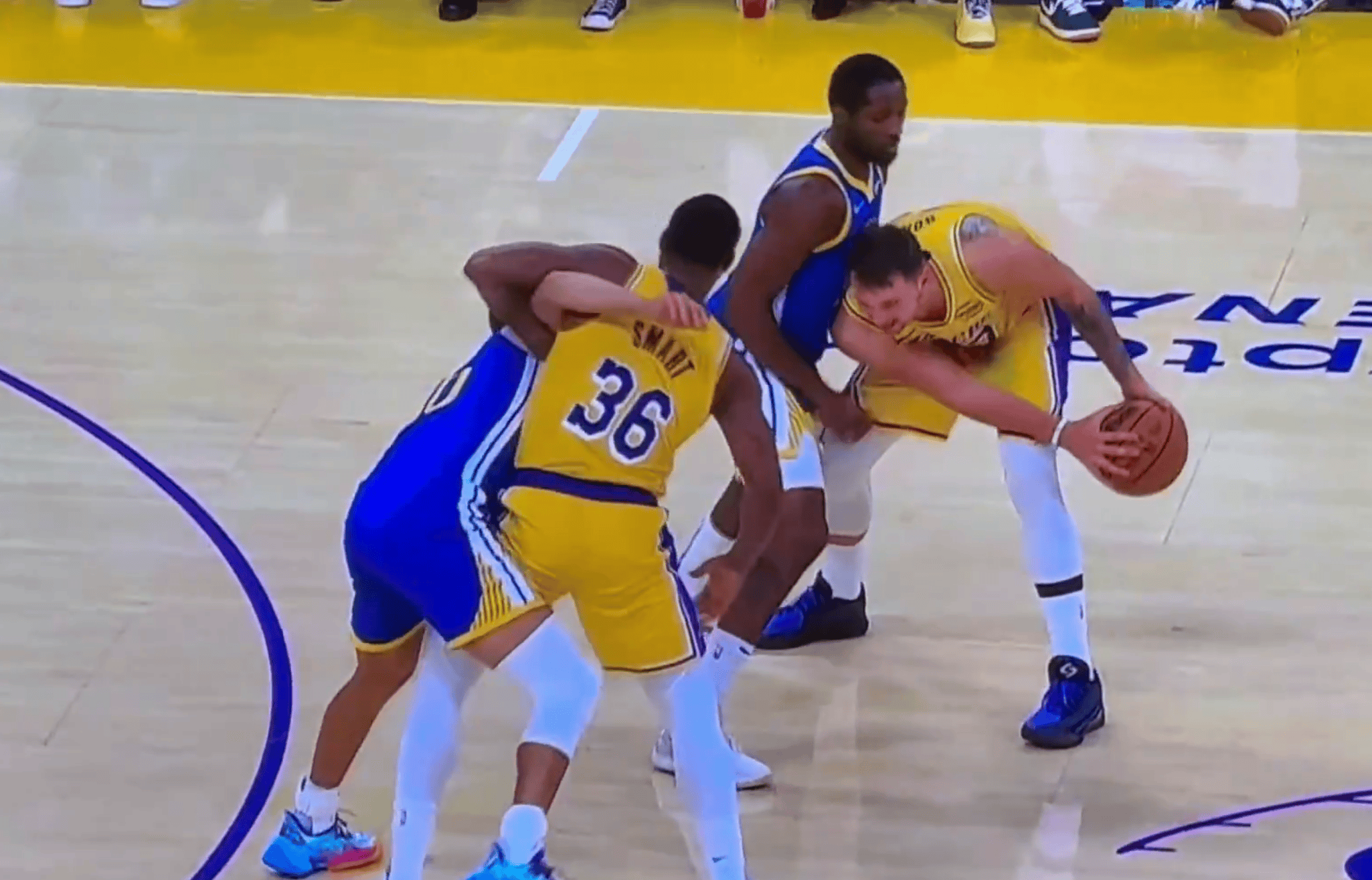 第二節(jié)比賽,斯馬特卡位時夾臂放倒庫里,裁判回看后吹罰斯馬特一級惡意犯規(guī)。