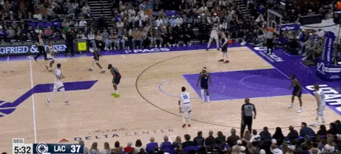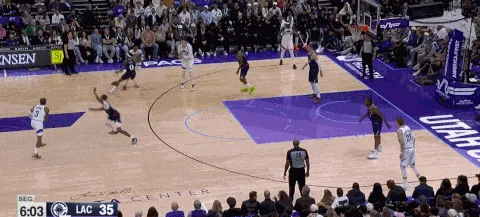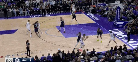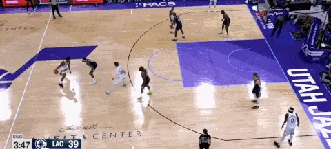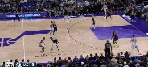 出色的轉(zhuǎn)移球和清晰的進攻思路是破解聯(lián)防和錯防的最佳方式。這個回合祖巴茨在右側(cè)底角,爵士將球運轉(zhuǎn)到左側(cè)攻擊快船的closeout不及,祖巴茨在另一側(cè)即使回到禁區(qū)也沒辦法完成協(xié)防。