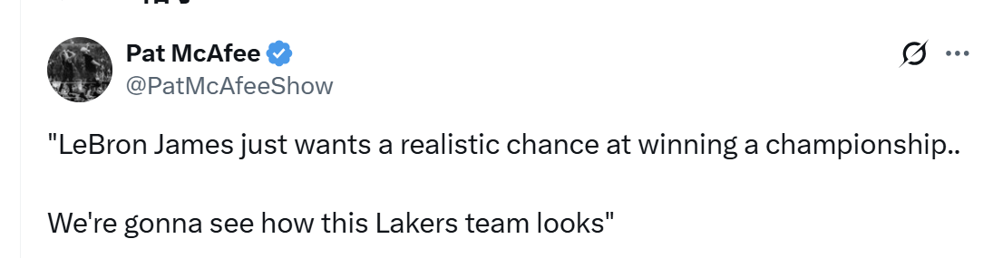 “勒布朗-詹姆斯的核心獲核心訴求始終是獲得爭奪總冠軍的現(xiàn)實機會。