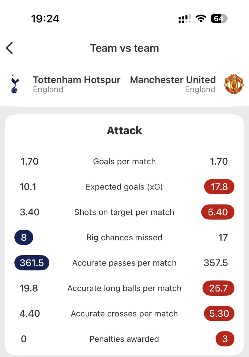 熱刺虛強,預(yù)期進球寡而實得僥幸,預(yù)期失球多而防守潰散;曼聯(lián)預(yù)期實而戰(zhàn)績未盈,底蘊深厚,此謂實勝。