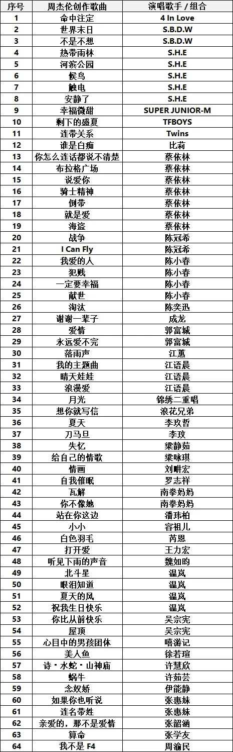 以下是周杰倫給其他歌手寫的部分經(jīng)典曲目
