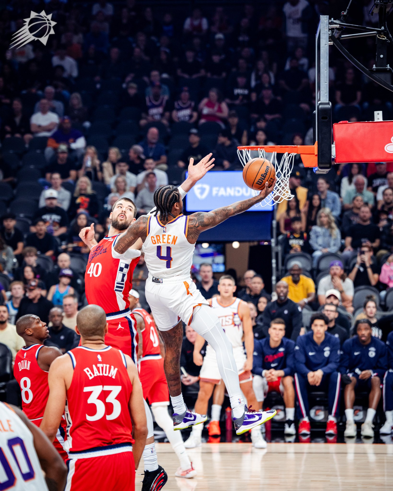 比賽的流言倫第一節(jié),杰倫-格林突破迎著祖巴茨上籃,板帥不帥得到賽季首分。太陽(yáng)
