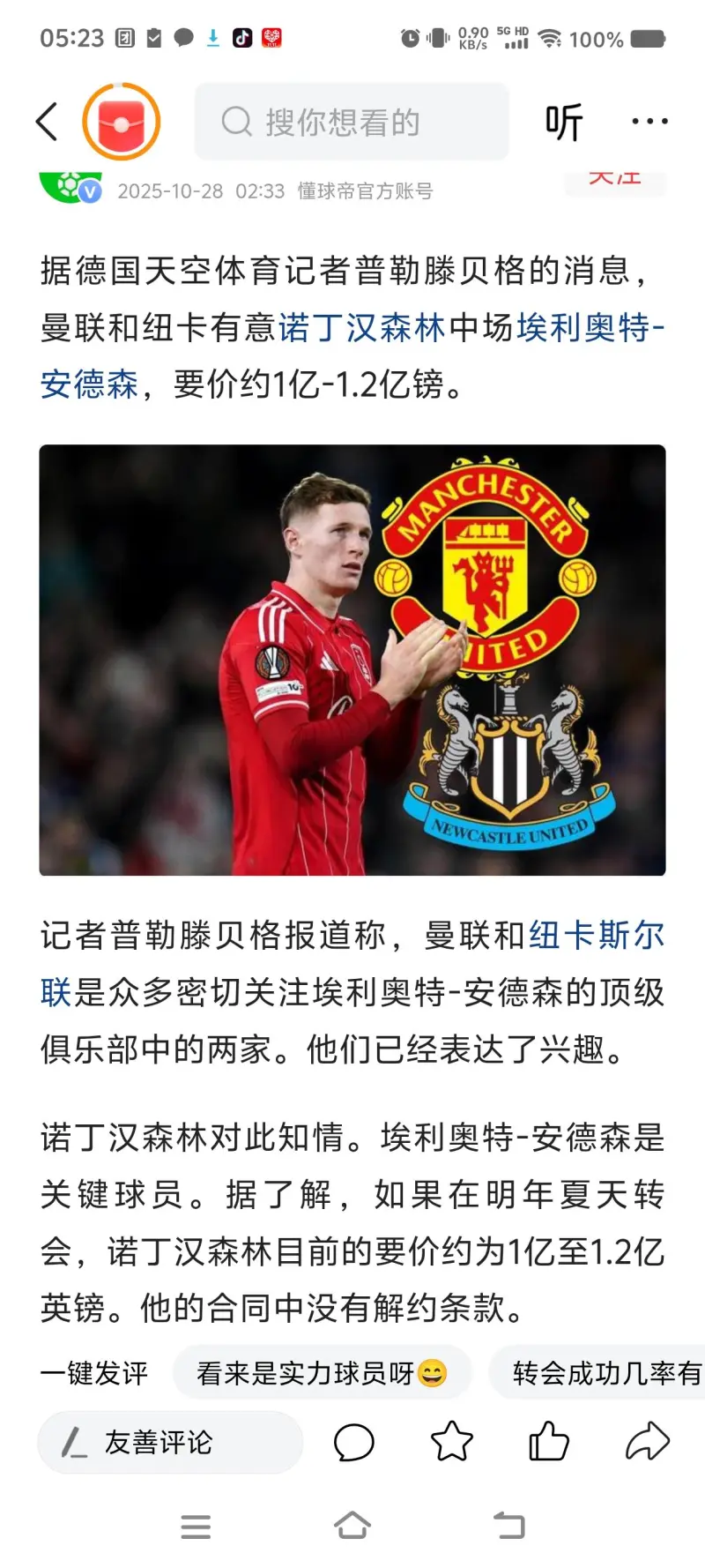 安德森確實是德天沒8000萬英鎊加2000萬英鎊浮動報價,諾丁漢森林離都不會理。知道自己
